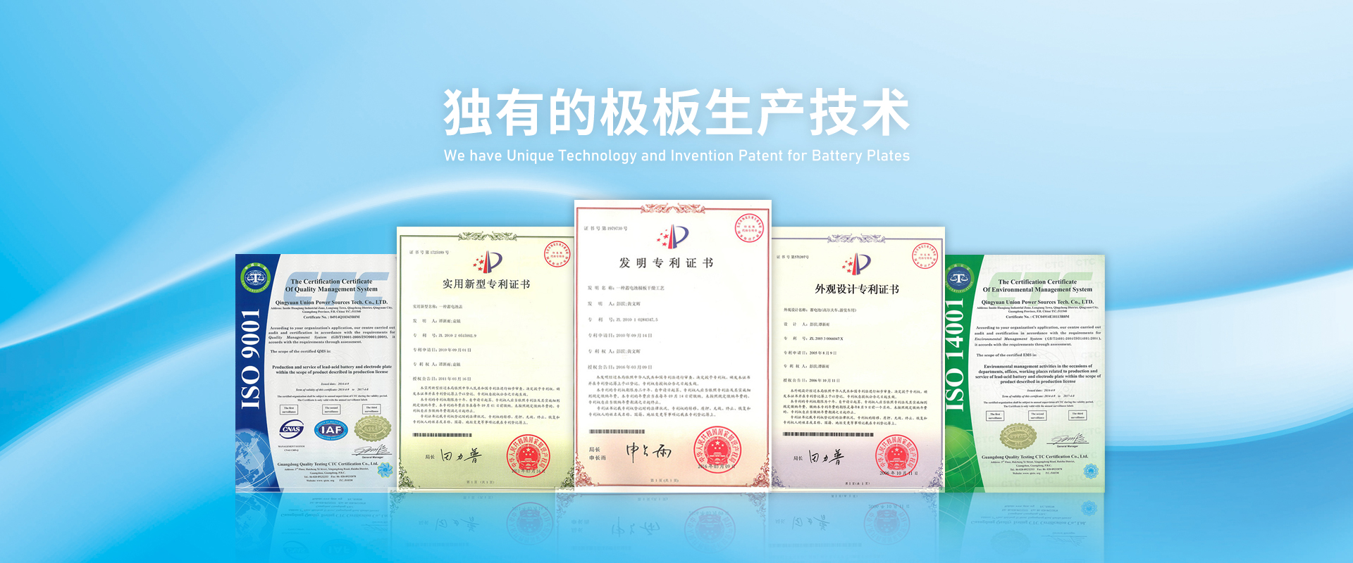 公司主要極板技術是國內最早從美國引進,又消化吸收了韓國UNION的充電化成技術,形成了自己獨特的電池制造工藝,并成功申請了國家發明專利的獨特極板固化工藝,電池產品工藝先進,產品質量穩定可靠。